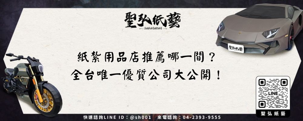 「聖弘紙藝」是一家專業的紙紮製造廠,擁有多年的經驗,並且是台灣最大的紙紮批發商。他們致力於研究新商品,並提供客製化紙紮用品,讓您可以依照需求訂製專屬的紙紮用品,完成往生者生前的心願。