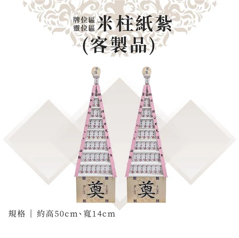 此款為:客製米柱紙紮 ※材質:精緻紙材 ※台灣製造、品質優良可靠 ※紙紮用品附受用紙、封條 ※紙紮屋附地契、女僕、管家、司機 ※適用場地:自宅、棺內、金爐、殯儀館、火化場